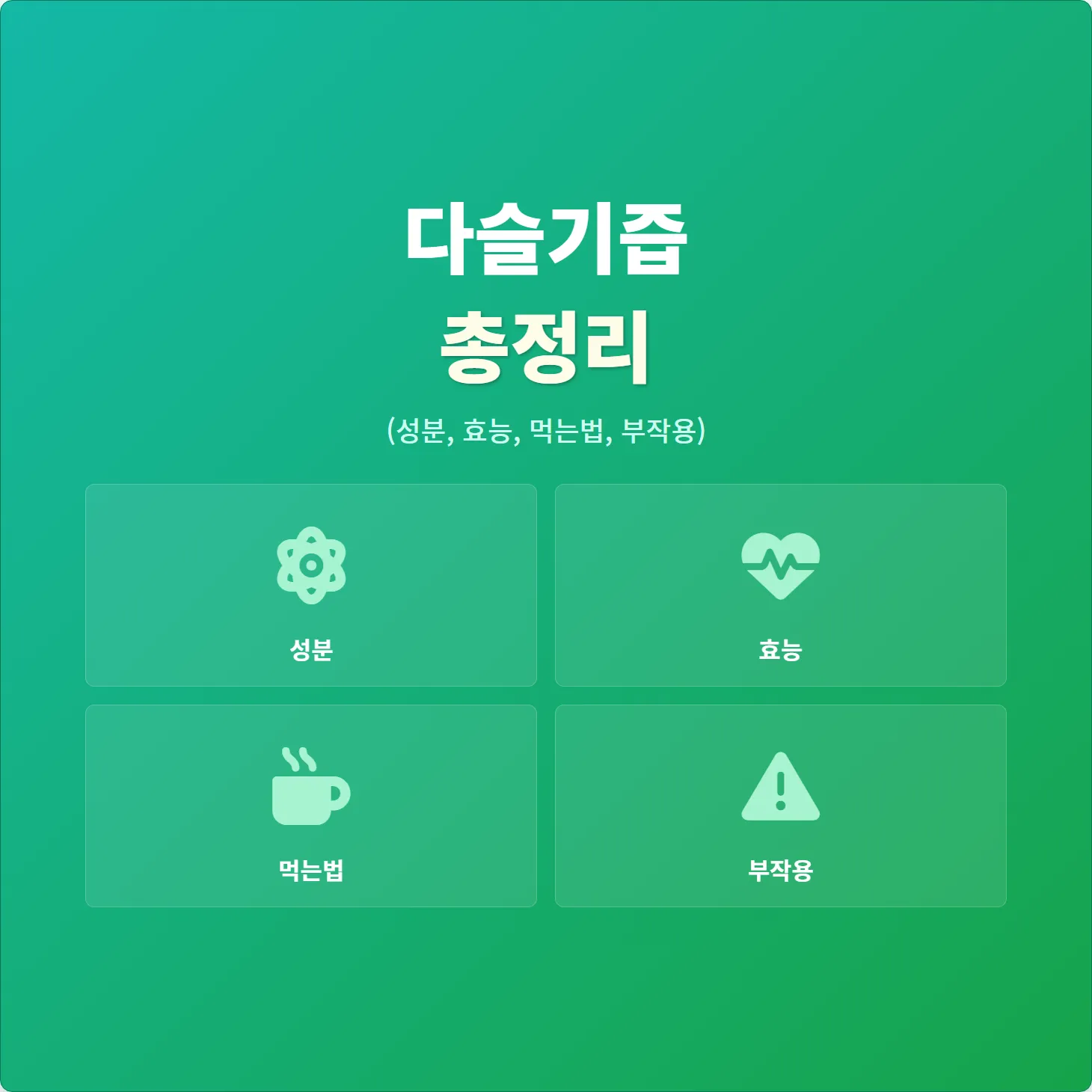 - 섭취 시간: 공복에 먹으면 흡수율이 좋지만, 위가 약하다면 식후에 드시는 것을 추천합니다.