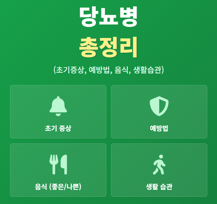 당뇨병, '소리 없는 위험'에 대한 완벽 가이드! 당뇨의 대표적인 초기증상(3다), 예방법, 혈당 관리에 좋은 음식과 안 좋은 음식, 그리고 올바른 생활습관까지 당뇨병 관리에 필요한 모든 핵심 정보를 총정리했습니다. 지금 바로 확인하고 건강을 지키세요!