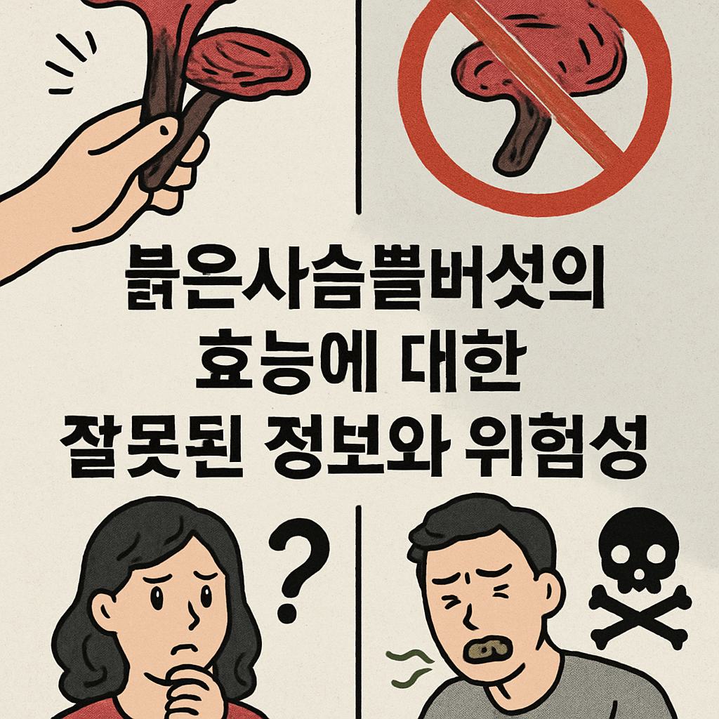 일부 블로그나 유튜브 등에서 "붉은사슴뿔버섯의 독성 성분이 암세포를 죽인다"거나, "민간에서는 약으로 쓴다"는 식의 전혀 검증되지 않은 정보가 확산되고 있습니다. 이는