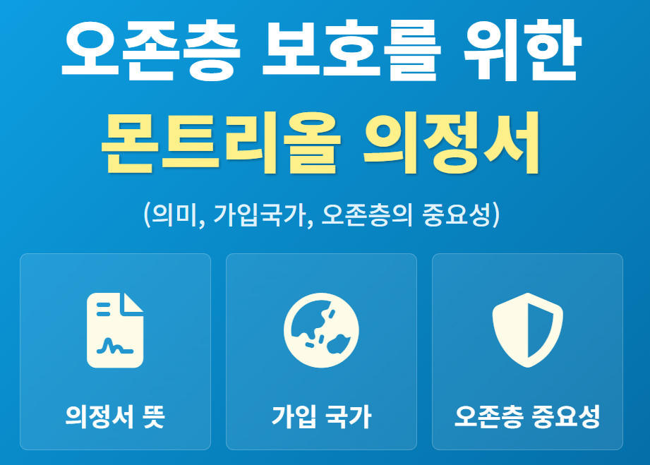 인류 역사상 가장 성공적인 환경 조약으로 불리는 몬트리올 의정서의 뜻과 중요성을 총정리했습니다. 오존층 파괴 물질인 프레온가스(CFCs)를 규제하기 위해 UN 전 회원국(198개 가입국가)이 만장일치로 비준한 이 약속 덕분에, 지구의 생명 보호막인 오존층이 실제로 회복되고 있습니다. 이 위대한 성공 스토리를 지금 바로 확인해 보세요.