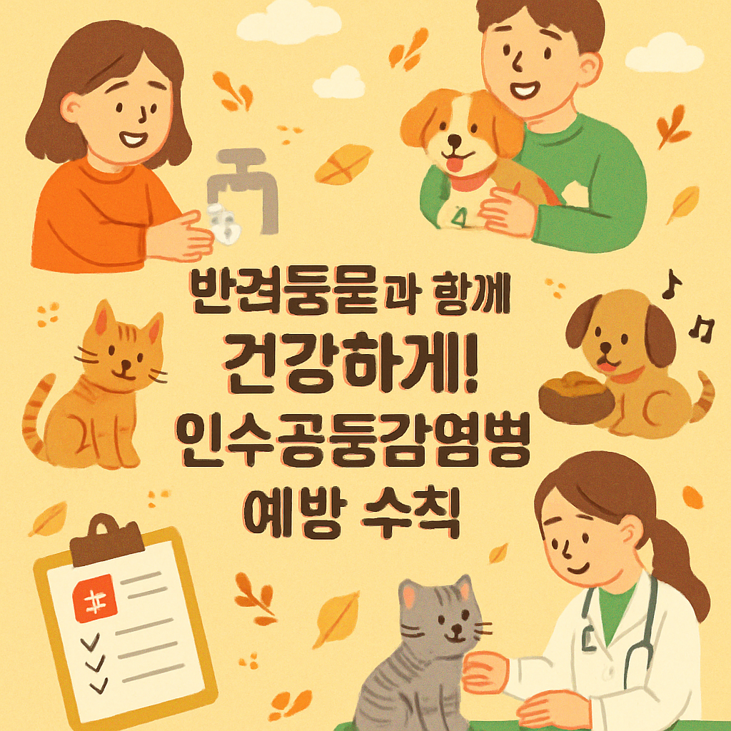 반려동물과 함께 건강하게! 인수공통감염병 예방 수칙을 총정리했습니다. 광견병, SFTS(중증열성혈소판감소증후군) 등 주요 동물매개감염병의 종류와 원인, 그리고 예방접종, 진드기 및 기생충 예방, 올바른 위생 습관까지. 지금 바로 '원헬스(One Health)' 관점에서 사람과 동물 모두의 건강을 지키는 방법을 확인하세요!