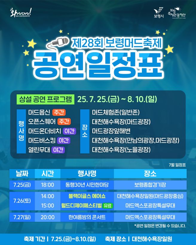 여러분은 이번 보령머드축제 라인업 중 어떤 가수의 공연이 가장 기대되시나요? 댓글로 함께 이야기 나눠요!