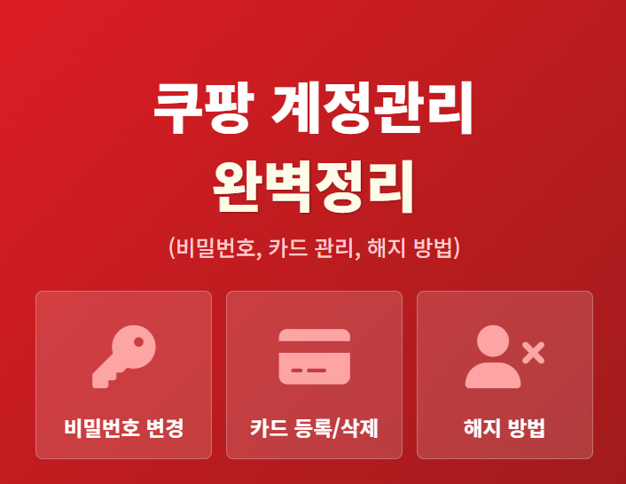 "쿠팡 비밀번호 좀 바꾸려는데 메뉴가 어디 있지? 카드 삭제는 또 왜 이렇게 복잡해?" 매일 쓰는 쿠팡이지만, 막상 설정하려면 헷갈리시죠?