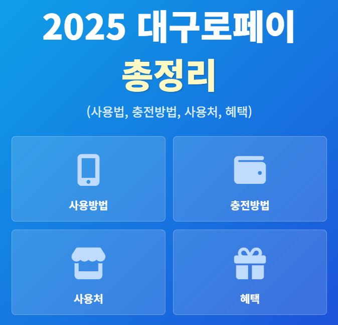 2025년 대구로페이의 모든 것! 13% 파격 할인 혜택, 월 50만원 한도 충전 방법, 삼성페이 연동 사용법, 배달앱 '대구로' 추가 할인, 소득공제 30% 등 사용처부터 혜택까지 완벽하게 총정리했습니다. 지금 바로 확인하고 대구 시민의 특권을 누리세요!