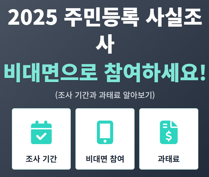 매년 이맘때쯤이면 찾아오는 주민등록 사실조사, 올해도 어김없이 시작되었습니다. '나 하나쯤이야' 하고 넘기기엔 우리 생활과 너무나 밀접하게 연관되어 있는데요. 사실 이 조사는 복지, 세금, 선거 등 국가 운영의 가장 기초가 되는 데이터를 정확하게 유지하기 위한 중요한 절차입니다. 특히 올해는 비대면 조사가 더욱 편리해졌고, 과태료를 피할 수 있는 좋은 기회도 있으니 꼭 주목해주세요.