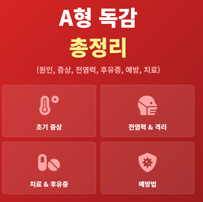 갑작스러운 고열과 온몸을 두들겨 맞은 듯한 근육통! 단순 감기가 아닌 'A형 독감'일 수 있습니다. A형 독감의 원인 바이러스, 대표적인 초기 증상과 전염 기간, 타미플루 등 치료 방법과 폐렴 같은 위험한 합병증까지 완벽하게 총정리했습니다.